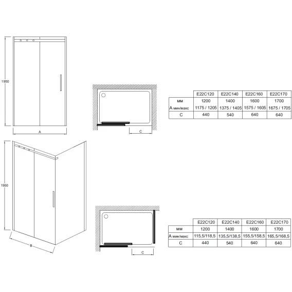 Душевая дверь 120 см Jacob Delafon Contra E22C120-BL прозрачное