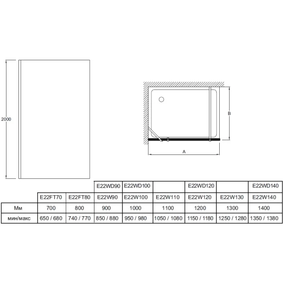 Душевой уголок 117,8x77 см Jacob Delafon Contra E22T121-GA + E22FT80-GA прозрачное