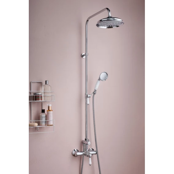 Металлическая розетка, Эксцентрики, Душевой шланг, Душевая лейка, Держатель для душевой лейки, Верхний душ, Смеситель, Кронштейн, Штанга душевая