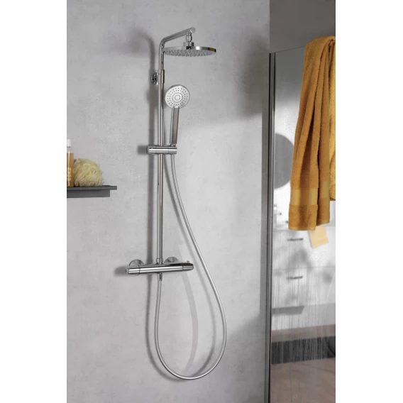 Металлическая розетка, Эксцентрики, Душевой шланг, Душевая лейка, Держатель для душевой лейки, Верхний душ, Кронштейн, Штанга душевая, Термостат