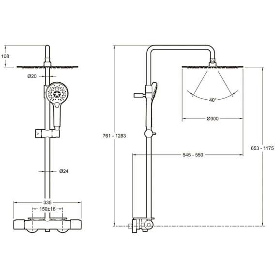 Душевая система 300 мм Jacob Delafon Metro E26588-BL