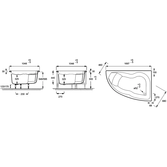 Акриловая ванна 170x105 см правая Jacob Delafon Micromega Duo E60220RU-00