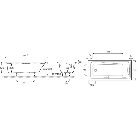 Акриловая ванна 159,8x75 см Jacob Delafon Odeon Up E6057RU-00