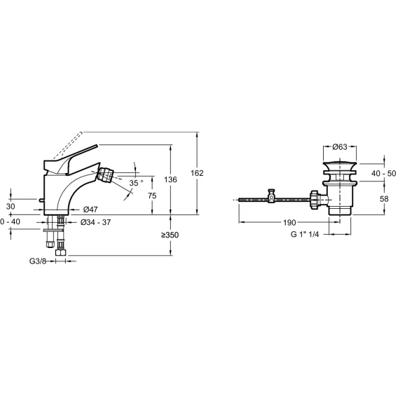 Смеситель для биде с донным клапаном Jacob Delafon Brive E75763-CP