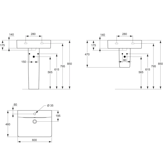 • для монтажа с колонной E797301/полуколонной E797401 или мебелью C1835WG, C1835SV