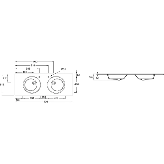 Раковина 140,6x51,5 см Jacob Delafon Odeon Rive Gauche EB2566-DE1