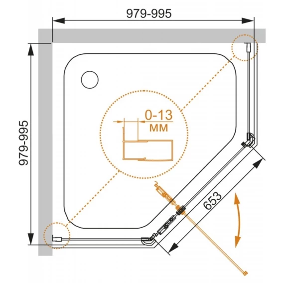 Душевой уголок 99,5x99,5 см Cezares ECO-O-P-1-100-C-Cr прозрачное