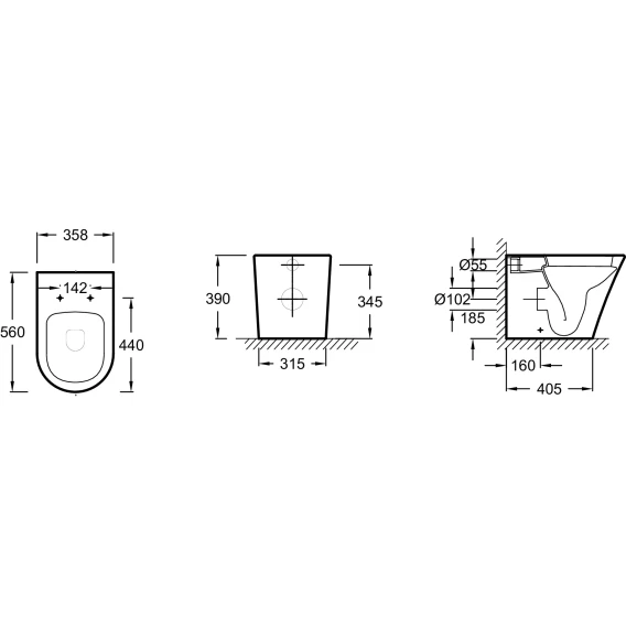 Глубина 56 см