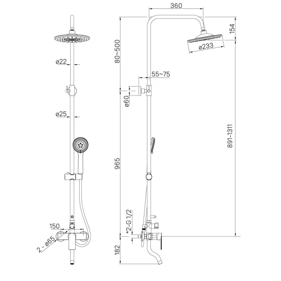 Душевая система 232 мм IDDIS Edifice EDISB3Fi06