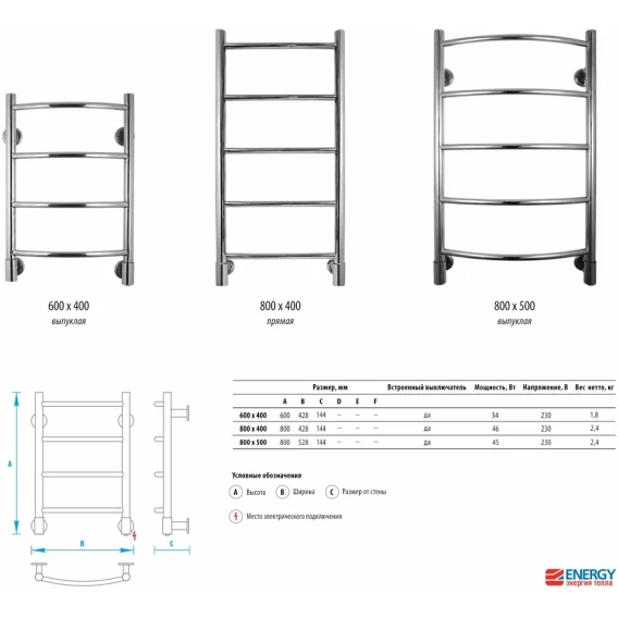 Полотенцесушитель электрический 600x400 Energy H EETR0000H06040R903M