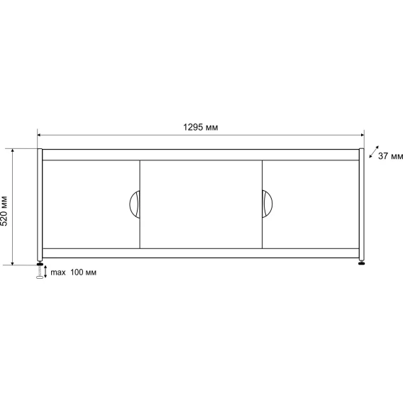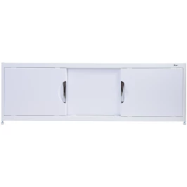 Каркас экрана выполнен из алюминиевого профиля, дверки изготовлены из МДФ и покрыты ПВХ пленкой толщиной 0,45 мм. Экран имеет 3 раздвижных створки. Алюминиевый профиль окрашен порошковой краской белого цвета и собирается на замках, что позволяет дополнительно регулировать экран по высоте. К боковым стойкам возможен монтаж торцевых панелей. Высота экрана 500 мм+ножки 20 мм. Ножки регулируются на 100 мм.