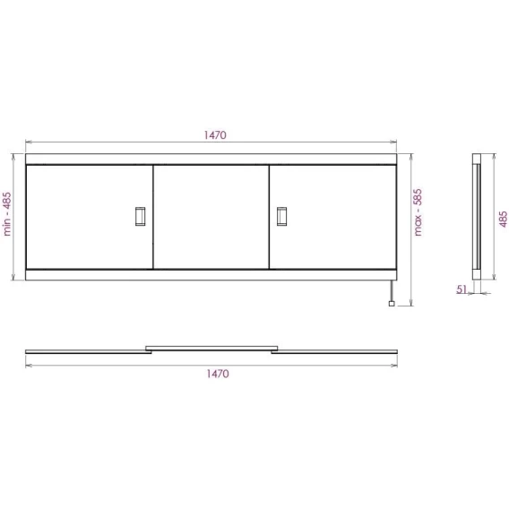 Универсальный экран под ванну Onika Монако-эконом 150 скрывает все расположенные под ванной коммуникации и служит профилактикой скопления загрязнений под чашей ванны. Экран Onika обладает повышенной износостойкостью, отлично переносит эксплуатацию в помещении с высокой влажностью и хорошо сочетается с любыми ваннами. Усиленная рама, состоящая из 2-х частей (верхней и нижней) выполнена из алюминия и окрашена в белый цвет. Благодаря отсутствию боковых стоек рамы, экран можно обрезать по ширине, создавая уникальный размер под нестандартные ванны.Конструкция имеет три подвижные раздвижные двери из МДФ, покрытых высокоглянцевой белой пленкой. Две боковые дверцы с врезными хромированными металлическими ручками. Установка враспор между ванной и полом делает конструкцию особо устойчивой и прочной. Ножки позволяют регулировать экран по высоте от 52 до 60 см, благодаря этому экран является универсальным и впишется в интерьер любой ванной комнаты.