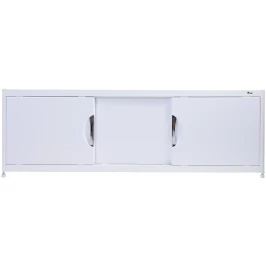 Каркас экрана выполнен из алюминиевого профиля, дверки изготовлены из МДФ и покрыты ПВХ пленкой толщиной 0,45 мм. Экран имеет 3 раздвижных створки. Алюминиевый профиль окрашен порошковой краской белого цвета и собирается на замках, что позволяет дополнительно регулировать экран по высоте. К боковым стойкам возможен монтаж торцевых панелей. Высота экрана 500 мм+ножки 20 мм. Ножки регулируются на 100 мм.