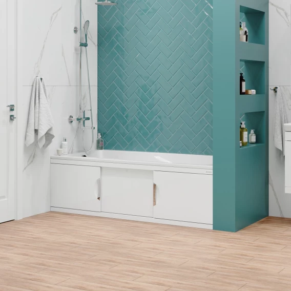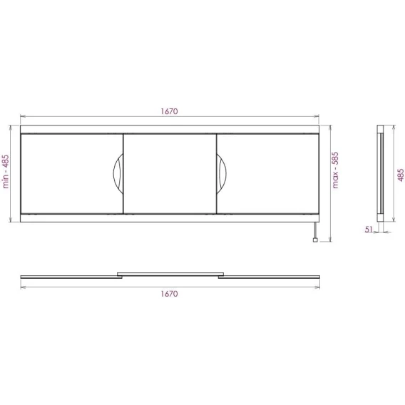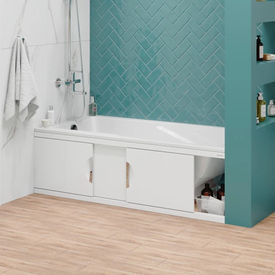 Универсальный экран под ванну Onika Лагуна-Эконом 170 скрывает все расположенные под ванной коммуникации и служит профилактикой скопления загрязнений под чашей ванны. Экран Onika обладает повышенной износостойкостью, отлично переносит эксплуатацию в помещении с высокой влажностью и хорошо сочетается с любыми ваннами. Усиленная рама, состоящая из 2-х частей (верхней и нижней) выполнена из алюминия и окрашена в белый цвет. Благодаря отсутствию боковых стоек рамы, экран можно обрезать по ширине, создавая уникальный размер под нестандартные ванны.Конструкция имеет три подвижные раздвижные двери из МДФ, покрытых высокоглянцевой белой пленкой. Две боковые дверцы с врезными хромированными металлическими ручками. Установка враспор между ванной и полом делает конструкцию особо устойчивой и прочной. Ножки позволяют регулировать экран по высоте от 52 до 60 см, благодаря этому экран является универсальным и впишется в интерьер любой ванной комнаты.