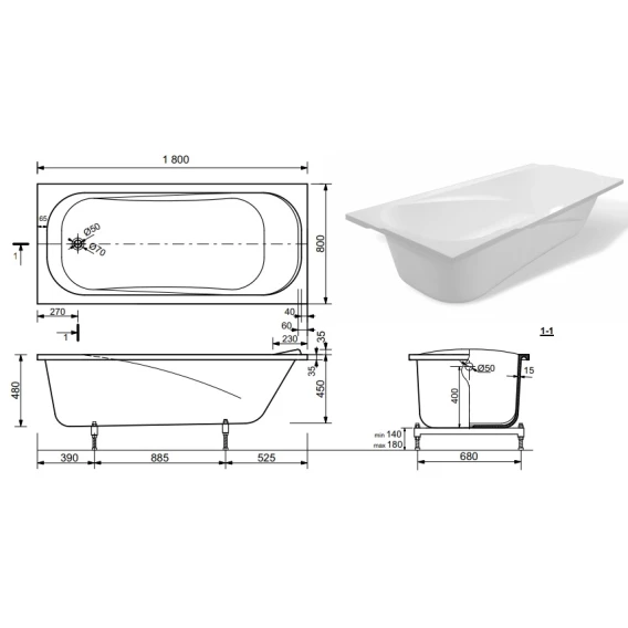 Длина 180 см