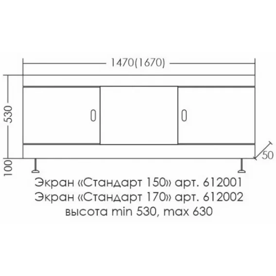 Экран под ванну 167x53 см белый Санта Стандарт 612002