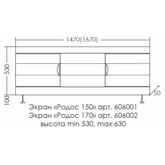 Экран под ванну 147x53 см белый Санта Родос 606001