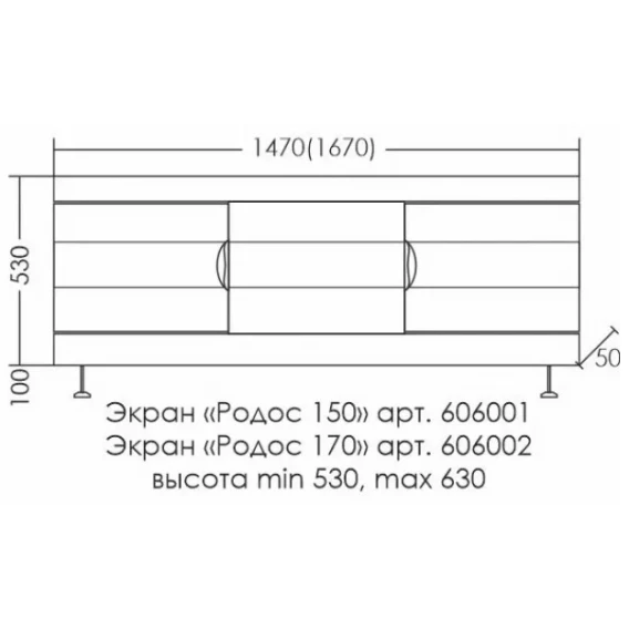 Экран под ванну 167x53 см белый Санта Родос 606002