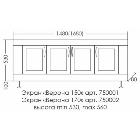 Экран под ванну 168x53 см белый Санта Верона 750002