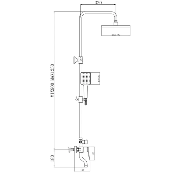 Душевая система 260x190 мм Bronze De Luxe Element EL77GB