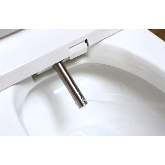 Унитаз оснащен системой без сливного бачка. Прямое подключение к водопроводу (нет бактерий, нет запаха)