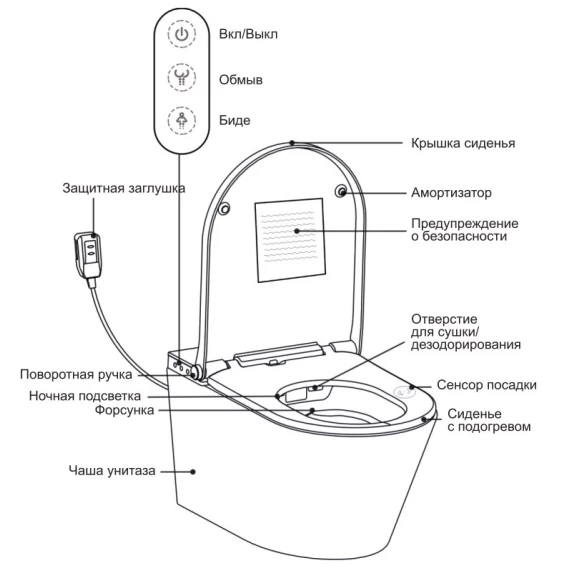 Электронный унитаз Lavinia Boho Smart V-Clean включает следующие функции: общий обмыв, биде, пульсирующий и клизменный режимы подачи воды, существует 5 уровней регулировки температуры и интенсивности потока воды, сушка теплым воздухом с возможностью регулировки температуры и режимами скорости, автоматическая функция дезодорации, система антинакипи.Мягкая ночная подсветка LED позволяет посещать туалет, не включая общее освещение. Полная безободковая чаша Rimless, в конструкции которой действительно отсутствуют труднодоступные места, способствующие скапливанию грязи и размножению патогенных бактерий.Система антивсплеск увеличивает гигиеничность использования изделия и делает уборку более быстрой и простой. Сиденье и крышка оснащены надежным демпфером, который обеспечивает плавное и бесшумное закрывание.Сиденье унитаза оснащено функцией подогрева.