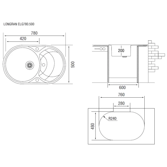Кухонная мойка крома Longran Eclipse ELG780.500 - 49