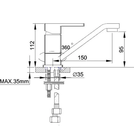 Установка Количество отверстий для монтажа 1 шт Гибкая подводка Наличие гибкой подводки есть Материал Материал смесителя латунь Конструкция Конструкция смесителя однорычажный Картридж Материал картриджа металлокерамика Размер картриджа 35 мм Вынос излива Длина выноса излива 150 мм Управление Тип управления ручное Поворотный излив да Ограничитель поворота излива нет Гарантия Срок гарантии 5 лет
