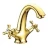 Тип--двухрычажныйНазначение-для раковины (умывальника)Термостат-нетЗапорный клапан-керамический картриджПокрытие-золотоФорма излива-традиционнаяВстраиваемый-нетСпособ монтажа-горизонтальныйКоличество монтажных отверстий-1