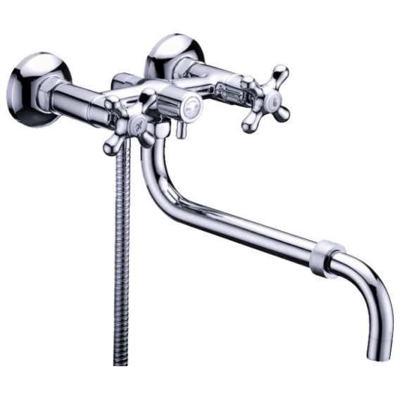 Тип-двухзахватныйНазначение-универсальныйФорма излива-традиционнаяКонструкция-поворотный изливВстраиваемый-нетСпособ монтажа-вертикальныйКоличество монтажных отверстий-2Тип подводки-жесткая