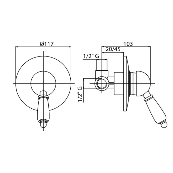 Смеситель для душа золото 24 карат, ручка металл Cezares Elite ELITE-DIM-03/24-M