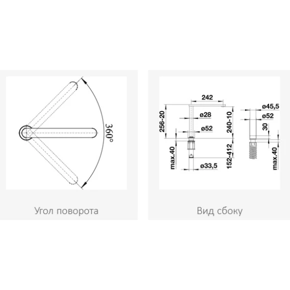 • Выдвигаемый и вращающийся излив