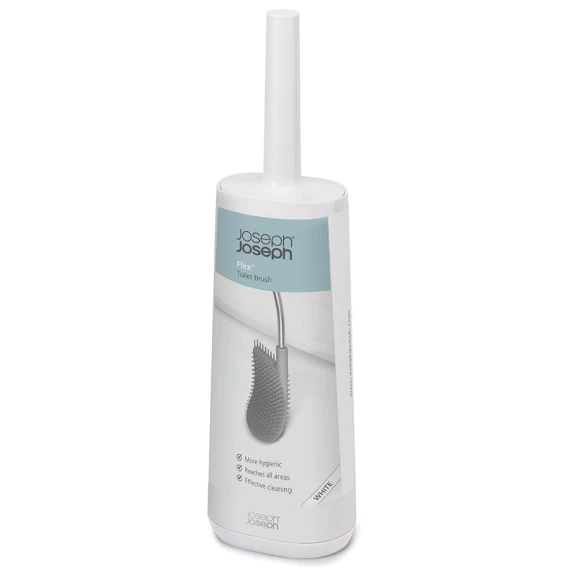 Инновационный аксессуар, который решает все проблемы поддержания чистоты и порядка санузла. Он был создан с учётом всех минусов обычных ёршиков.Гибкая полимерная щетка эффективно очищает все труднодоступные места и не впитывает воду. Высокотехнологичный материал ёршика не притягивает грязь и легко моется. Двухуровневая щетина с большим расстоянием между щетинками не дает грязи скапливаться. После уборки ёршик не надо стряхивать, пытаясь очистить и высушить: благодаря уникальному дизайну Flex™, вода быстро стекает со щетки и не оставляет лишних капель. Удобная и компактная подставка дополняет этот эргономичный аксессуар и не занимает много места.При уборке с отбеливающими средствами стоит избегать его попадания на ручку из нержавеющей стали!