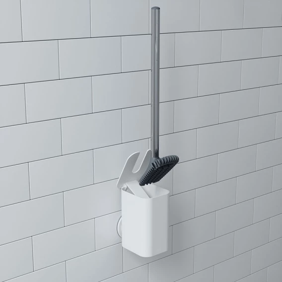Ершик с гибкой щеткой упростит процесс уборки.Прорезиненная щетина предотвращает появление вызывающих запах бактерий и грибка и не царапает поверхность. При снятии щетки с держателя крышка остается поднятой и закрывается автоматически при возвращении щетки на место. Аксессуар надежно фиксируется на полу или стене благодаря вакуумной системе крепления. Ершик устойчив к ржавчине.
