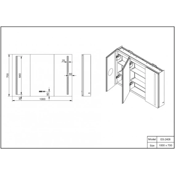 Зеркальный шкаф 100x70 см алюминий Esbano ES-2408