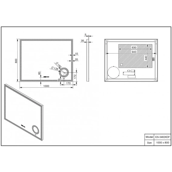 Зеркало 100x80 см Esbano ES-3482 KDF