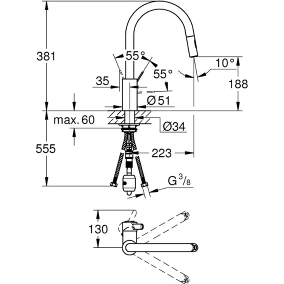 • GROHE EasyDock Легкое вытягивание и возврат на место выдвижного излив