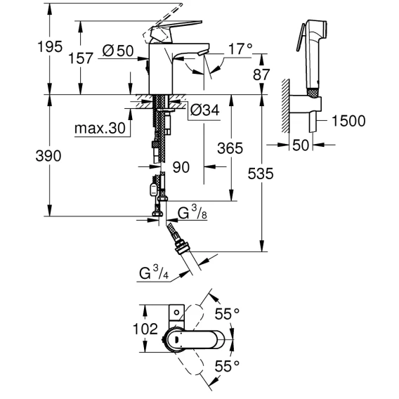 Крепление, Аэратор, Гибкая подводка, Душевой шланг, Душевая лейка, Держатель для душевой лейки, Запорный вентиль, Цепочка