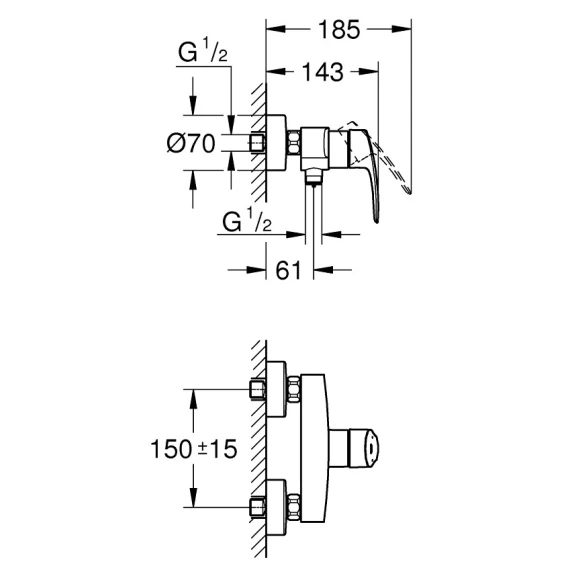 • отвод для душа снизу 1/2" со встроенным обратным клапаном