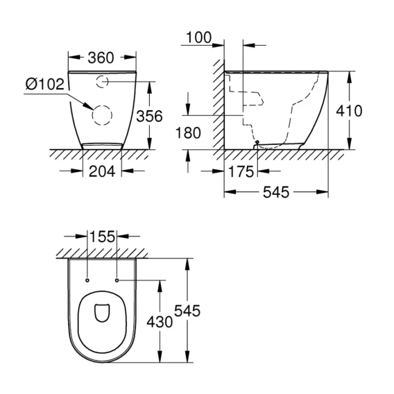 Приставной безободковый унитаз Grohe Essence Ceramic 3957300H