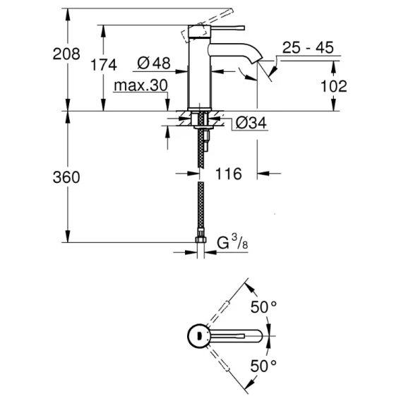 Смеситель для раковины без донного клапана Grohe Essence 23590GL1