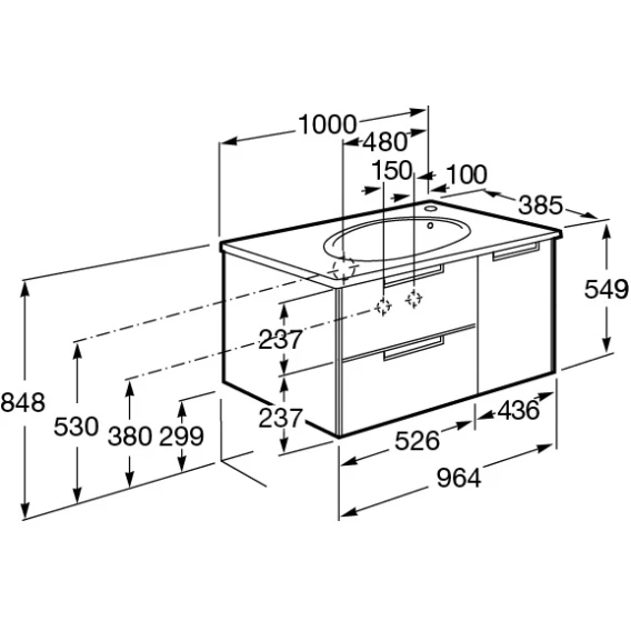 Комплект мебели белый глянец 100 см Roca Etna 857302806 + 327009000 + 857305806