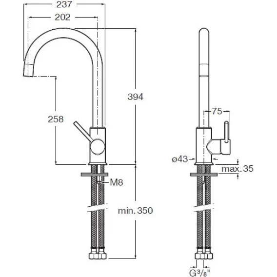 Высота излива 25.8 см