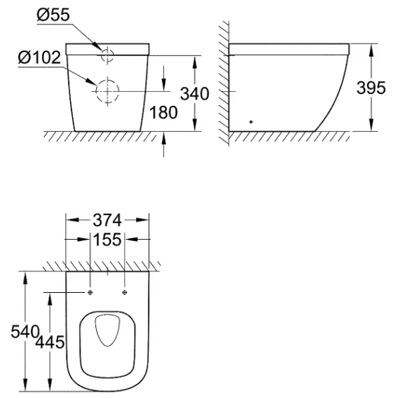 Приставной безободковый унитаз Grohe Euro Ceramic 3933900H