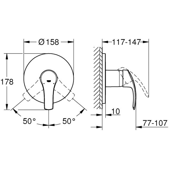 • с настенными розетками GROHE QuickFix (скрытые эксцентрики, уплотнение, скрытый монтаж)