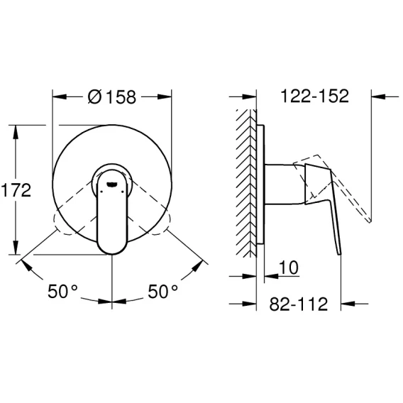• с настенными розетками GROHE QuickFix (скрытые эксцентрики, уплотнение, скрытый монтаж)