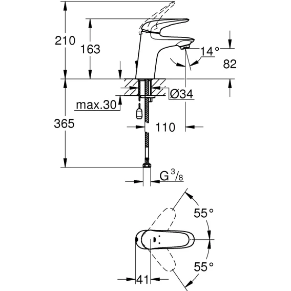 Смеситель для раковины с цепочкой Grohe Eurostyle 23713003