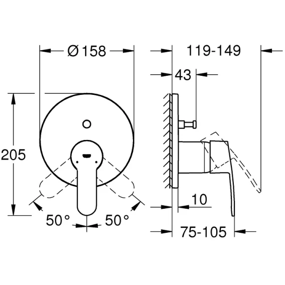 • с настенными розетками GROHE QuickFix (скрытые эксцентрики, уплотнение, скрытый монтаж)