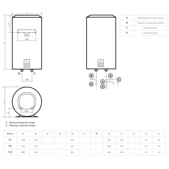 Индикатор нагрева, Защита от сухого нагрева, Цифровой термометр, Устройство защитного отключения электричества(УЗО), Предохранительный сливной клапан