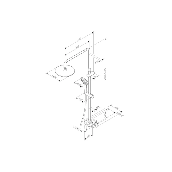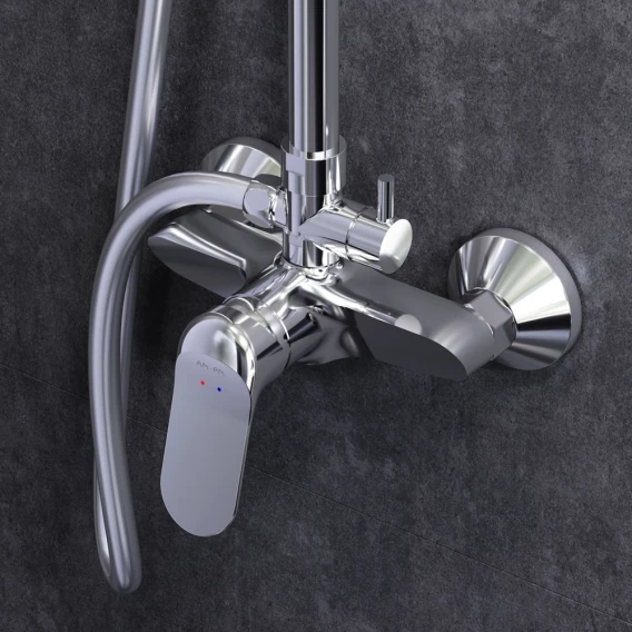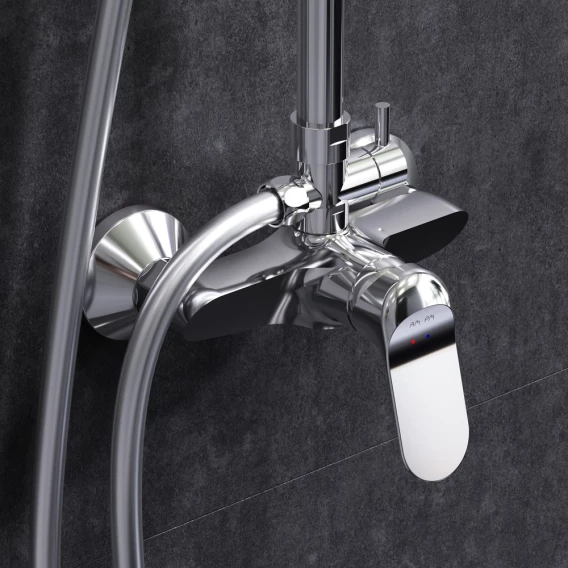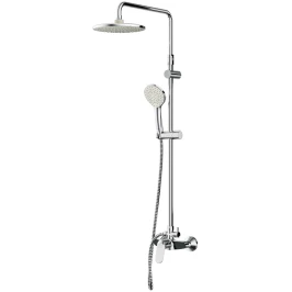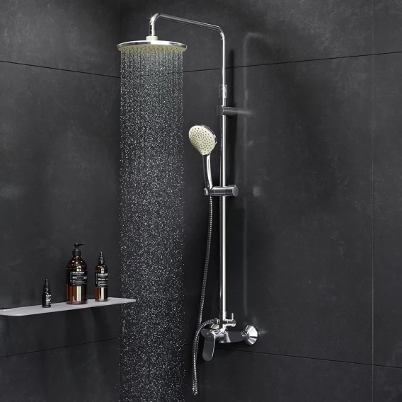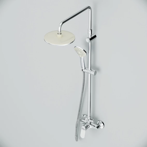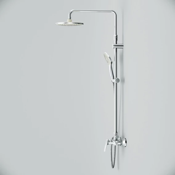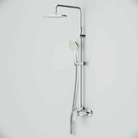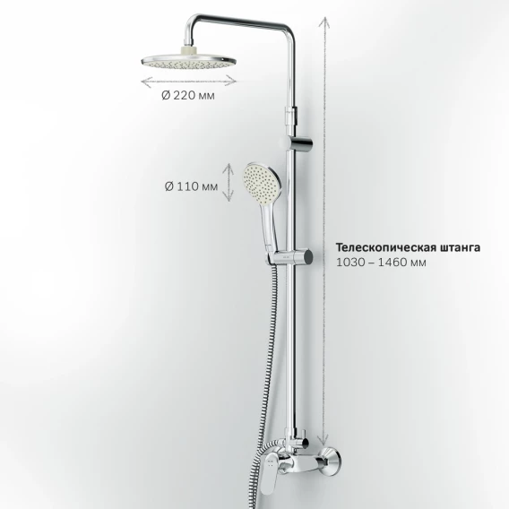 Металлическая розетка, Эксцентрики, Душевой шланг, Душевая лейка, Держатель для душевой лейки, Верхний душ, Смеситель, Кронштейн, Штанга душевая